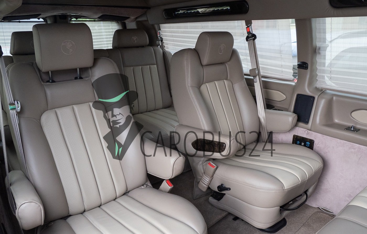 Chevrolet Express – минивэн премиум-класса, предназначенный для пассажирских перевозок. Когда требуется отвезти небольшое количество гостей на место проведения свадебного торжества, корпоративного вечера или другого мероприятия, этот микроавтобус станет лучшим выбором. Он комфортабельный, имеет презентабельный вид, обеспечивает безопасность пассажиров во время поездки. Вместительный салон рассчитан на 6 посадочных мест