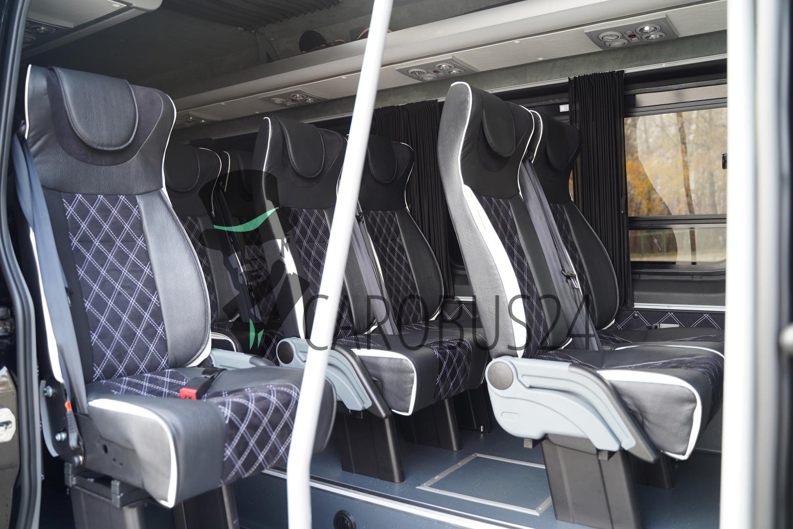 ВИП-микроавтобус идеально подходит для долгих поездок. Салон оборудован многоканальным кондиционером, сиденья раскладываются в положение «полулёжа» и «лёжа», а также поворачиваются вокруг оси. Тонированные стёкла и занавески защищают от яркого солнечного света днём, а в тёмное время суток салон освещают точечные светильники над каждым пассажирским местом и мягкая подсветка боковых и потолочных панелей.