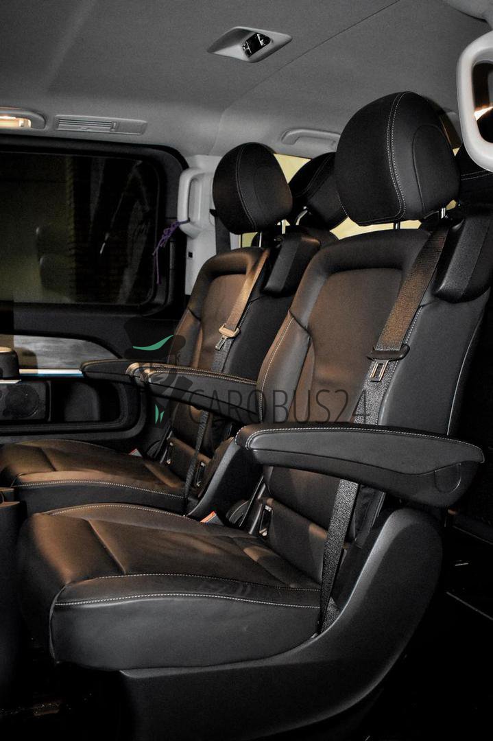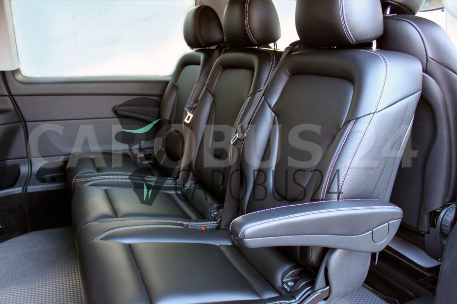 V-класс подкупает своим превосходным комфортом, солидностью и фирменным стильным дизайном ‒ от исключительной вместительности до несравненного качества материалов и отделки из кожи чёрного, белого, бежевого цвета, включая интуитивно понятную концепцию управления, естественное освещение, аудиосистему, кондиционер.