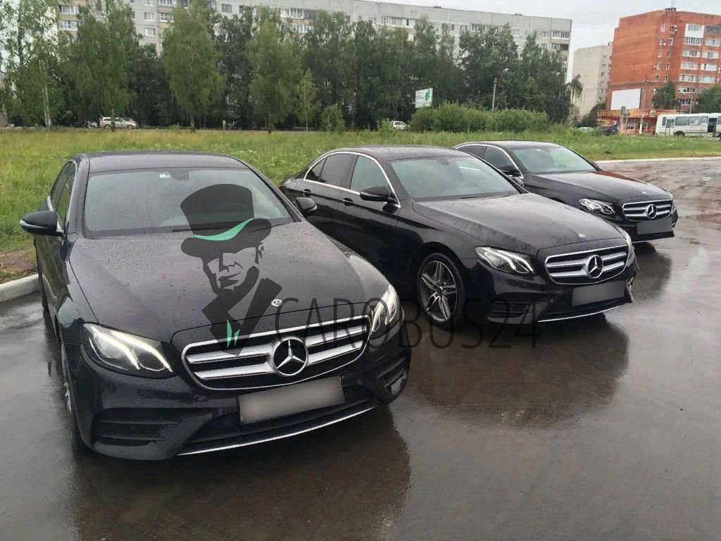 • кортеж из нескольких дорогих авто, в числе которых имеется седан Е-class.