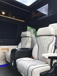 ВИП-микроавтобус идеально подходит для долгих поездок. Салон оборудован многоканальным кондиционером, сиденья раскладываются в положение «полулёжа» и «лёжа», а также поворачиваются вокруг оси. Тонированные стёкла и занавески защищают от яркого солнечного света днём, а в тёмное время суток салон освещают точечные светильники над каждым пассажирским местом и мягкая подсветка боковых и потолочных панелей.