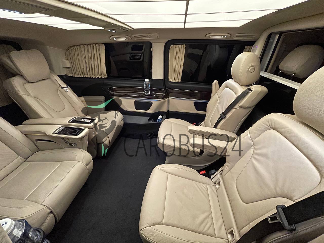 V-класс подкупает своим превосходным комфортом, солидностью и фирменным стильным дизайном ‒ от исключительной вместительности до несравненного качества материалов и отделки из кожи чёрного, белого, бежевого цвета, включая интуитивно понятную концепцию управления, естественное освещение, аудиосистему, кондиционер.